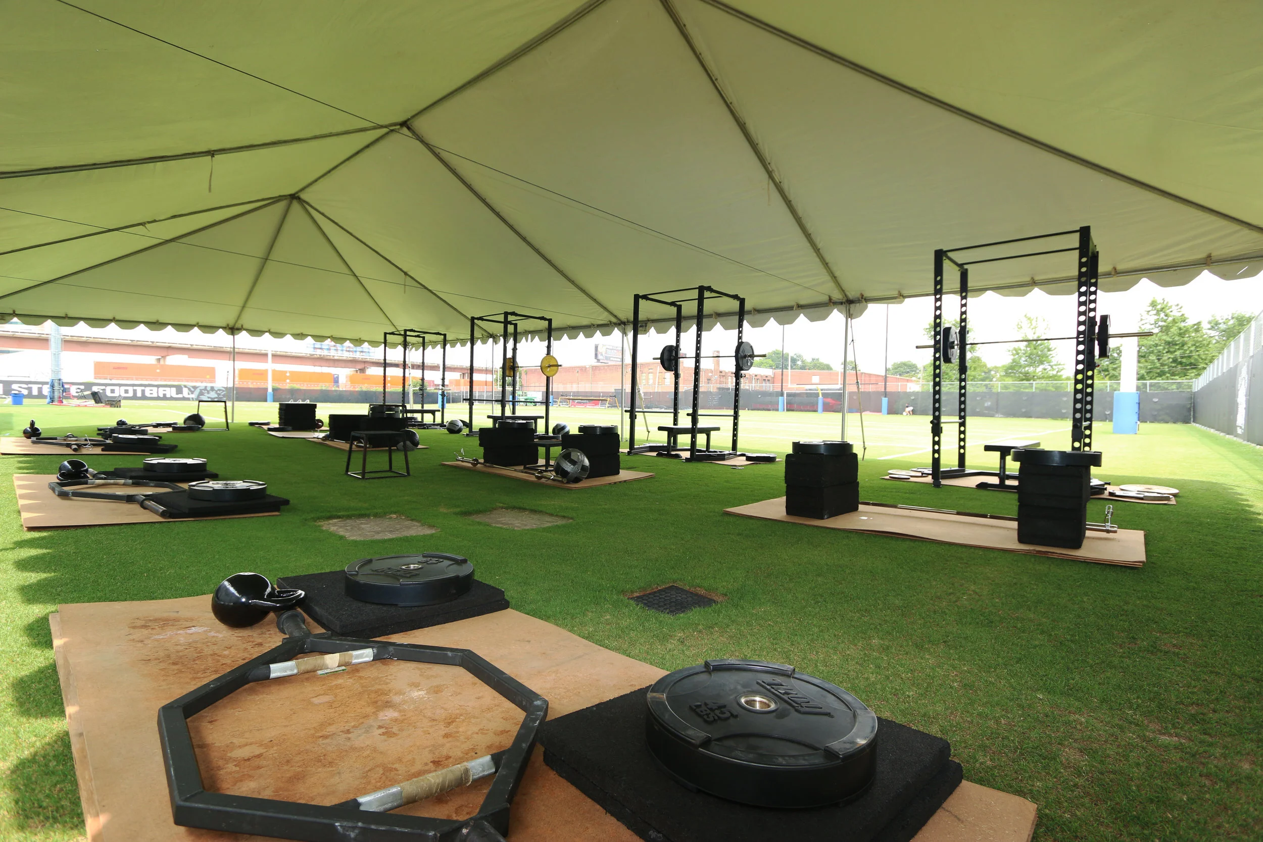 Installation of drink station, ice station, windscreen and graphics for the Georgia State University’s practice football facility.