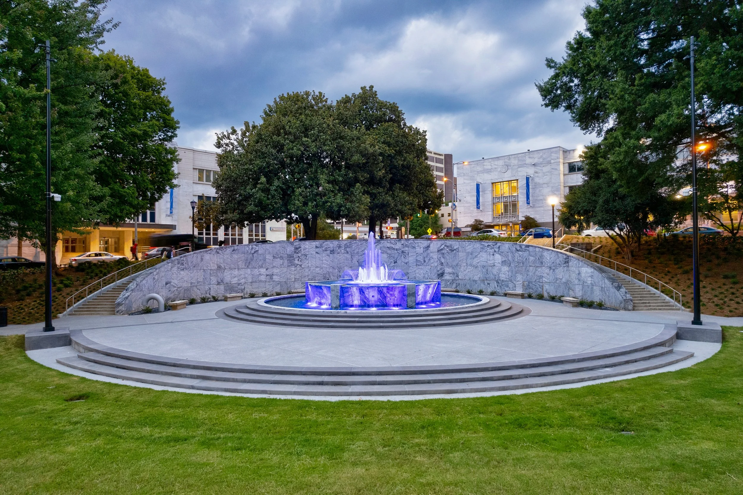 This project was a renovation of the fountain located in Hurt Park for Georgia State University. In addition to renovations, we repointed the radius wall, added precast stairs around the fountain, and reset the curbing around the park.