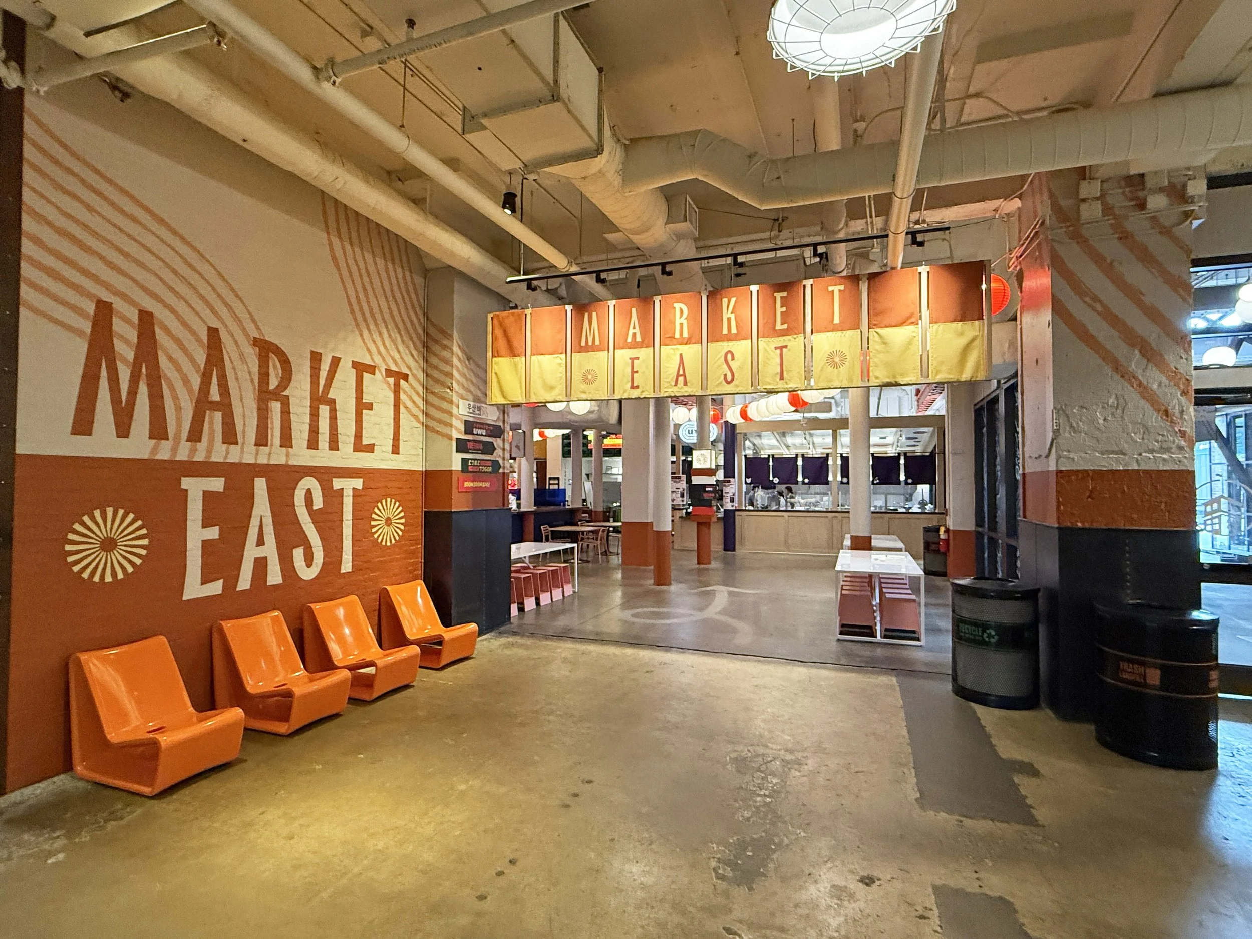 The east wing of Ponce City Market was renovated and rebranded as Market East, a 5,800-square-foot transformation that expands the iconic central food hall. The project included the buildout of six new vendor kiosk shell spaces with commercial kitchens, three of which became new restaurants—Uwu Desserts, Lime Tiger, and Boom Boom Bao. The renovation also introduced new lighting, signage, and paint, creating a fresh identity for the space while honoring the character of the historic building.