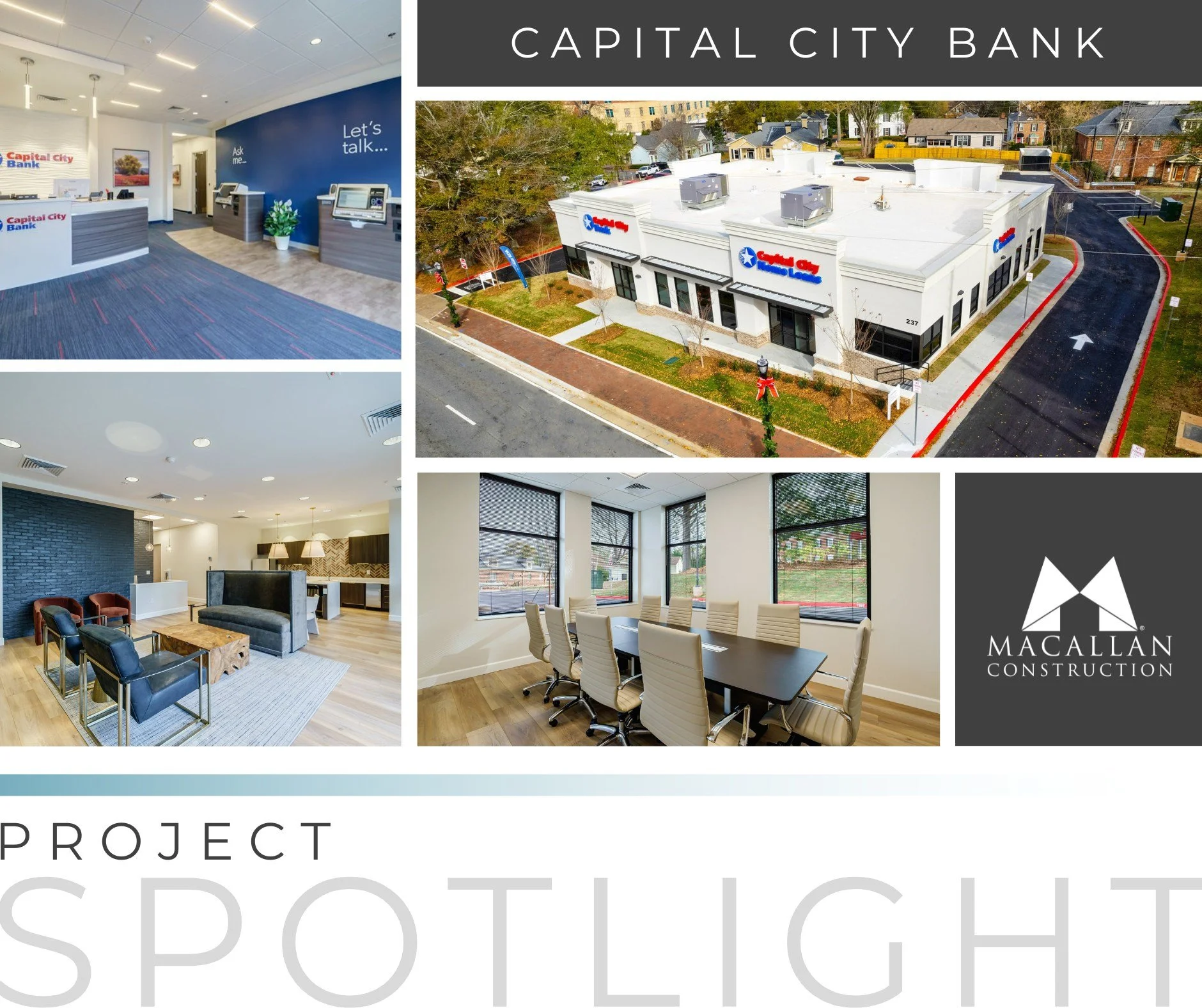 Throwback to one of our favorites! Capital City Bank was completed in 2022 and is one of the only Georgia locations for Capital City Bank, just steps from Marietta Square. This project was a 6,110-square-foot new construction building with a 1.98-acre total land improvement. The bank is divided into a banking center and a home loan office.